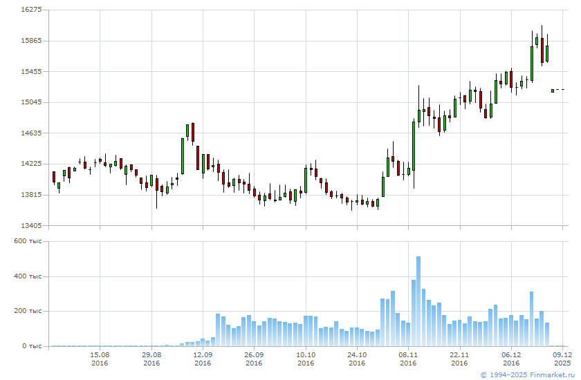 Биржевые котировки инструмента Газпром_РТС-ф_dec16 предоставлены Московской биржей. Перераспространение информации только с разрешения биржи.