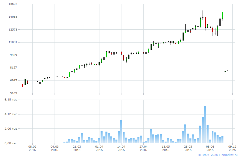 | Средневзвешенная цена дня: | 7 629,0000 |