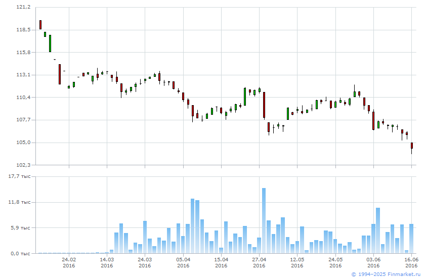 Биржевые котировки инструмента USD/JPY_ММВБ-ф_jun16 предоставлены Московской биржей. Перераспространение информации только с разрешения биржи.