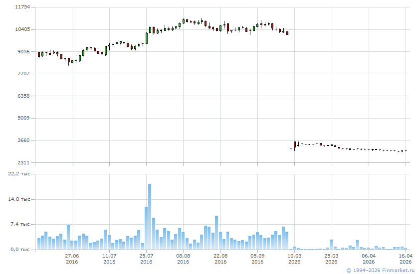 | Средневзвешенная цена дня: | 3 008,0500 |