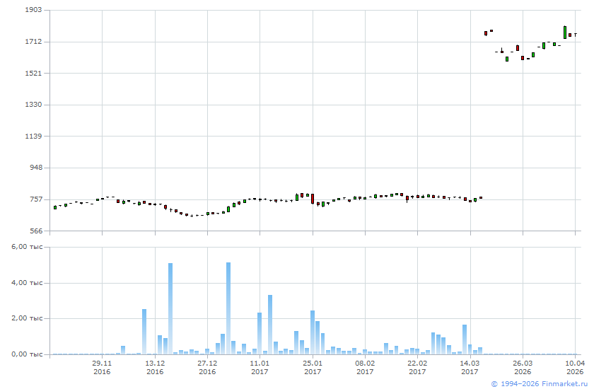 | Средневзвешенная цена дня: | 1 752,4100 |
