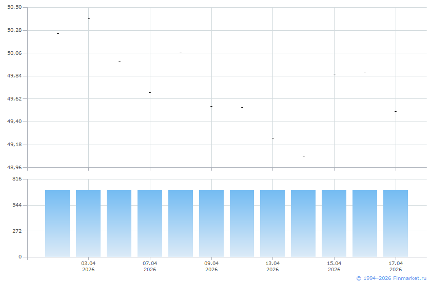 | Средневзвешенная цена дня: | 49,5000 |