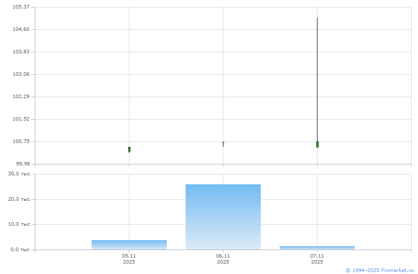 | МБ Основной рынок T+ | 100,57 | -0,15 | 17 | 46 605 RUB | 07.11 15:06 | |
