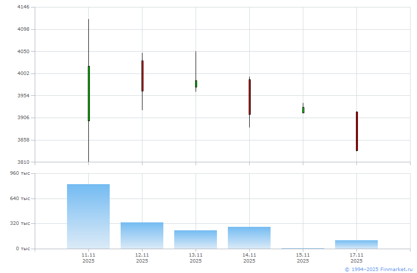 | Средневзвешенная цена дня: | 3 887,0000 |