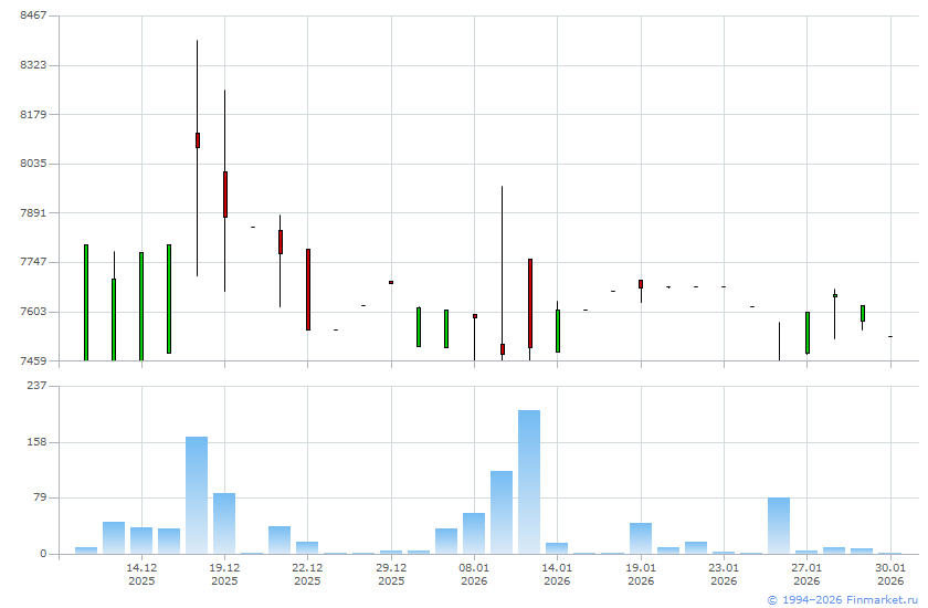| Средневзвешенная цена дня: | 7 531,0000 |
