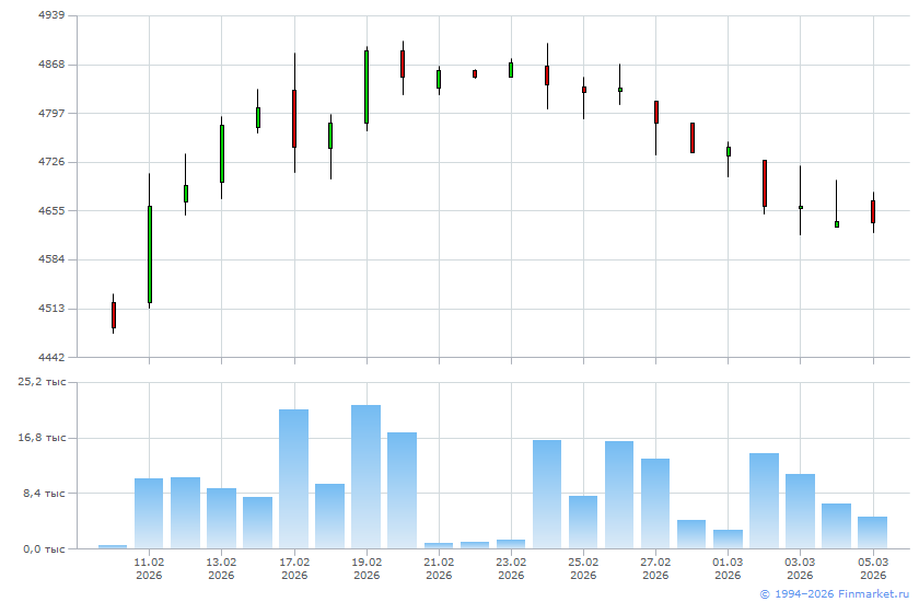 | Средневзвешенная цена дня: | 4 651,5400 |