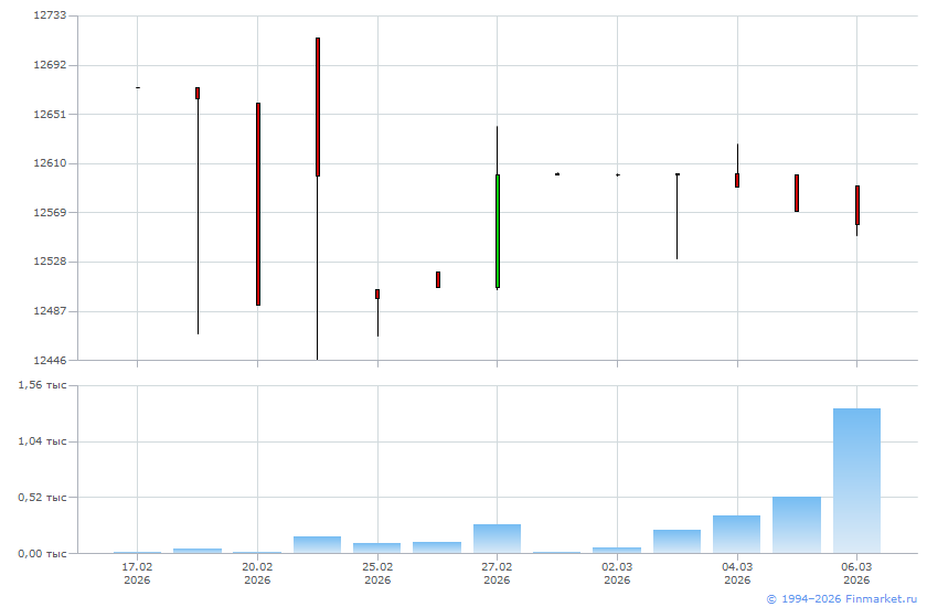 | Средневзвешенная цена дня: | 12 561,2400 |