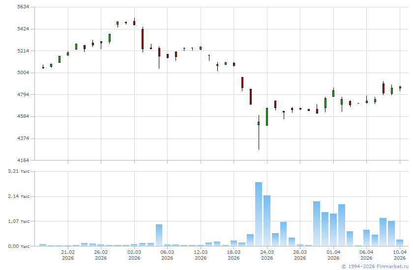 | Цена последней заявки на продажу: | 4863,7 |