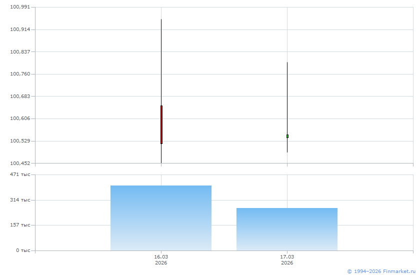 | Средневзвешенная цена дня: | 100,5300 |