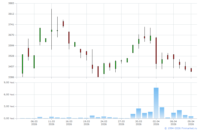 | Цена последней заявки на продажу: | 3431,5 |