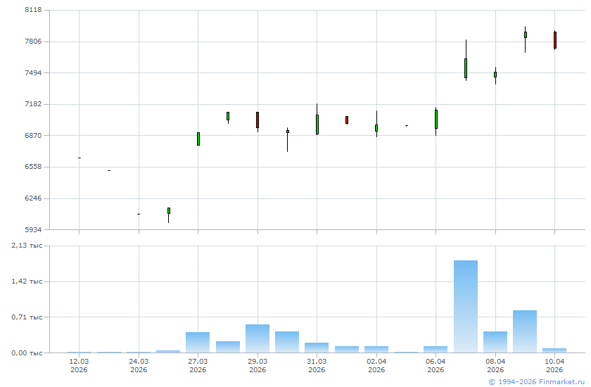 | Средневзвешенная цена дня: | 7 805,7300 |