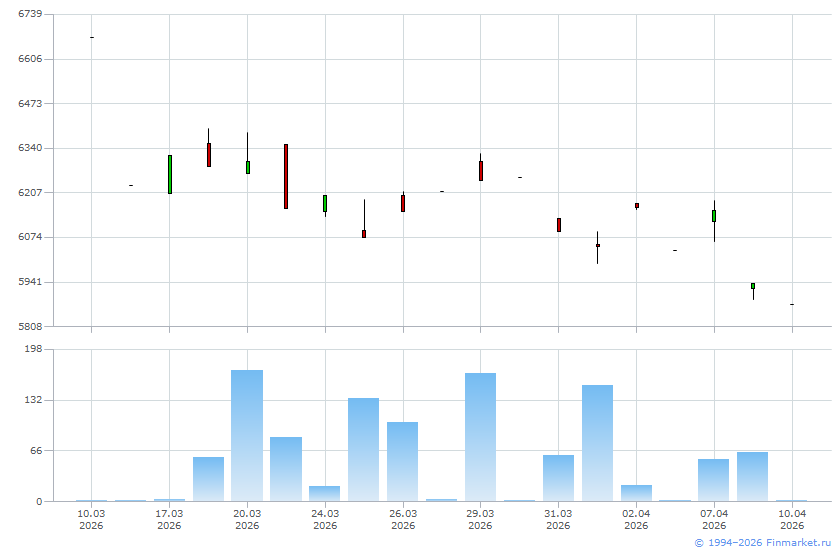 | Средневзвешенная цена дня: | 5 874,0000 |