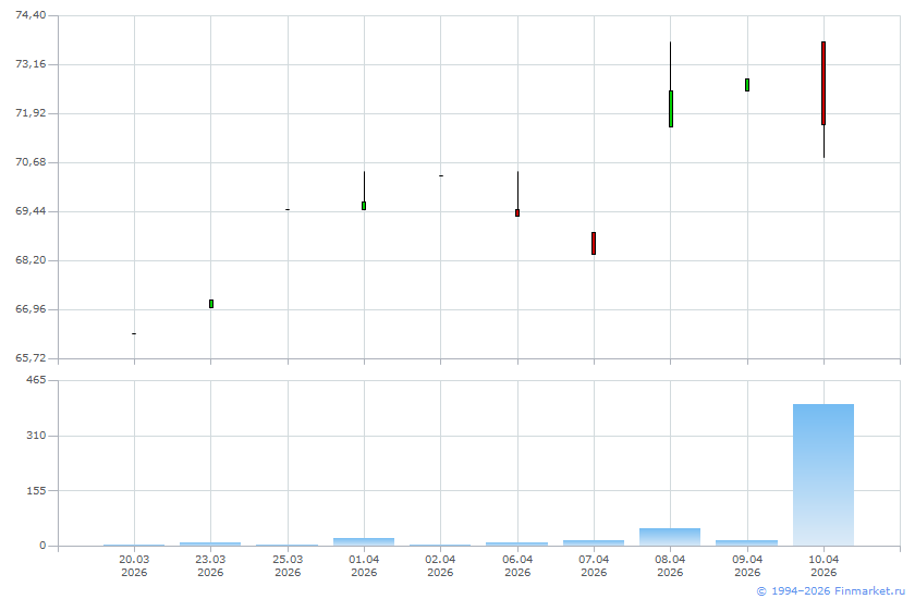 | Цена последней заявки на продажу: | 73,75 |