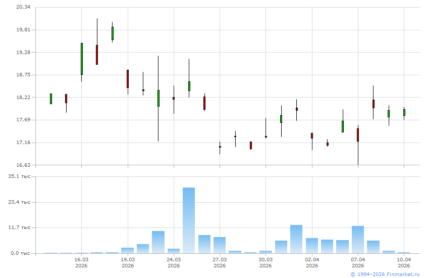 | МБ Срочный рынок Фьючерсы | RUB | 18 | 18,05 | 17,99 | +0,06 | - | 36 | 194 | 3 463,00 RUB | 10.04 15:48 | ||