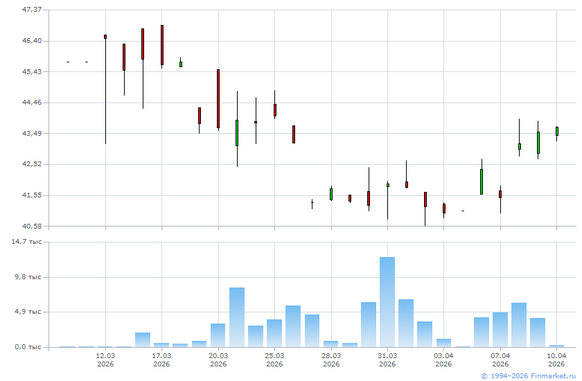 | МБ Срочный рынок Фьючерсы | RUB | 43,77 | 43,81 | 43,68 | +1,18 | - | 16 | 101 | 4 390,00 RUB | 10.04 15:48 | ||