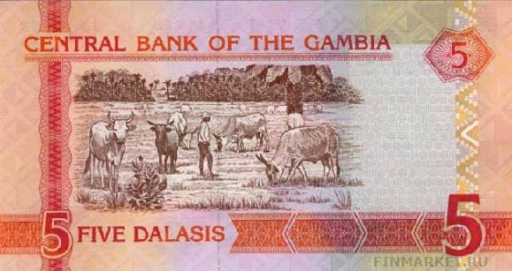 Купюра номиналом в 5 GMD, реверс.