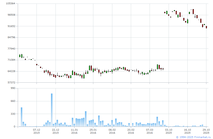 | Средневзвешенная цена дня: | 90 971,8000 |