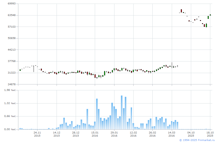 МБ Срочный рынок Фьючерсы | TATN_1603 | RUB | 63953 | 64300 | ![]() | 64000 | +1,55 | - | 5 | 5 | 318 729,00 RUB | 18.10 18:50 |