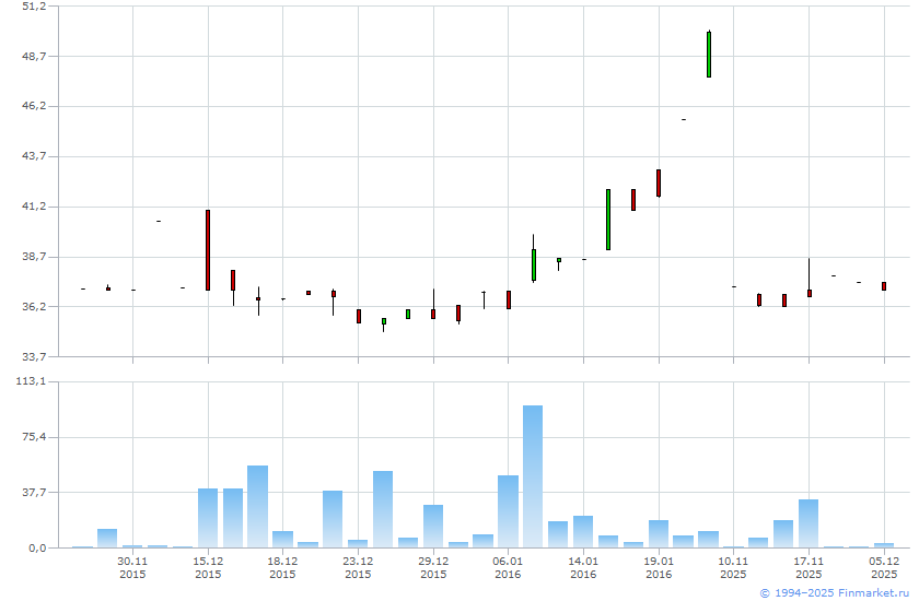 | МБ Срочный рынок Фьючерсы | RVI_1601 | RUB | 36,75 | 37,4 | - | - | - | - | - | - | - | 16.12 09:20 |