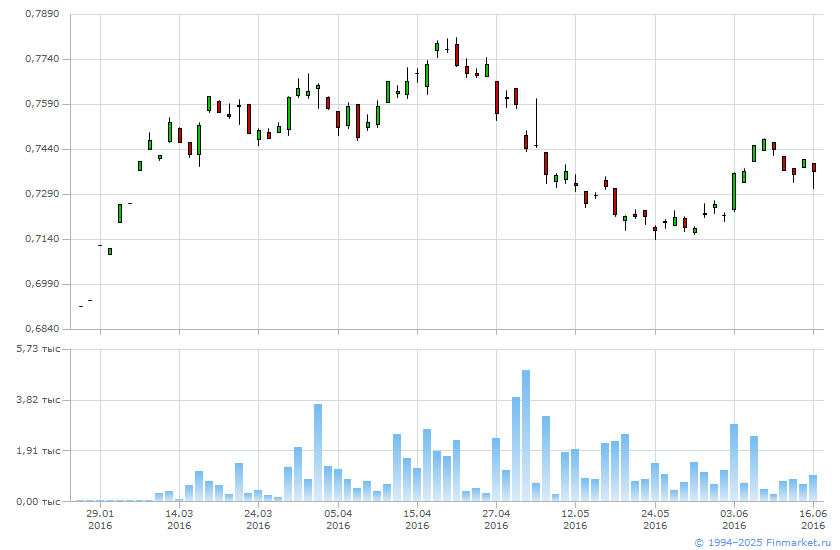 Биржевые котировки инструмента AUD/USD_РТС-ф_jun16 предоставлены Московской биржей. Перераспространение информации только с разрешения биржи.