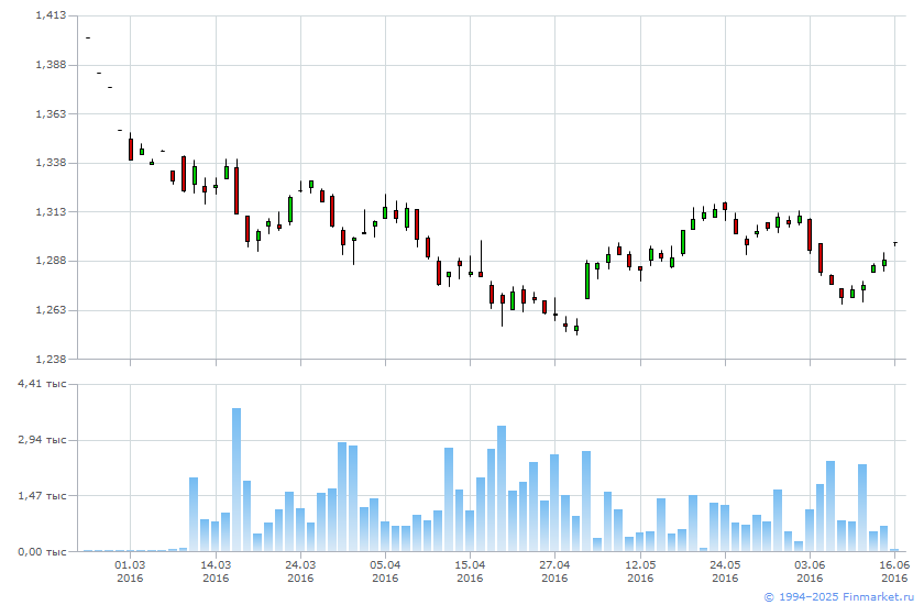 Биржевые котировки инструмента USD/CAD_МБ-ф_jun16 предоставлены Московской биржей. Перераспространение информации только с разрешения биржи.