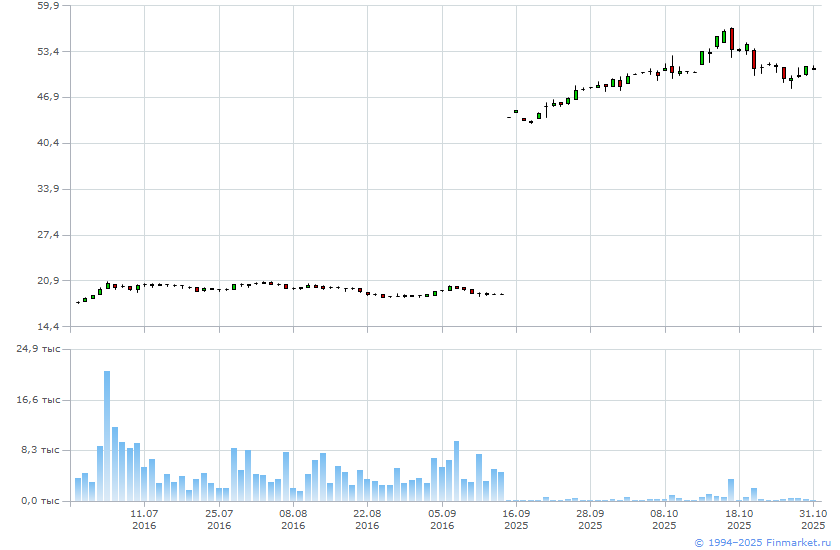 | Цена последней сделки: |  50,97 (-0,1300 / -0,25%) |