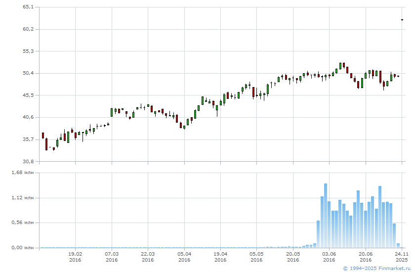 | МБ Срочный рынок Фьючерсы | BR_1607 | RUB | 61,71 | 62,46 | - | 62,23 | - | - | 2 | 2 | 125,00 RUB | 24.11 09:39 |