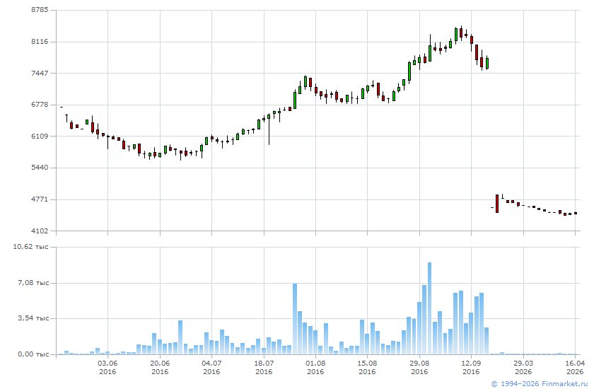| Средневзвешенная цена дня: | 4 502,0000 |