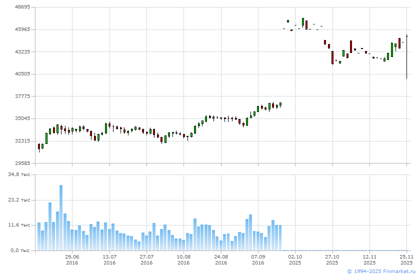 | Средневзвешенная цена дня: | 43 931,4600 |
