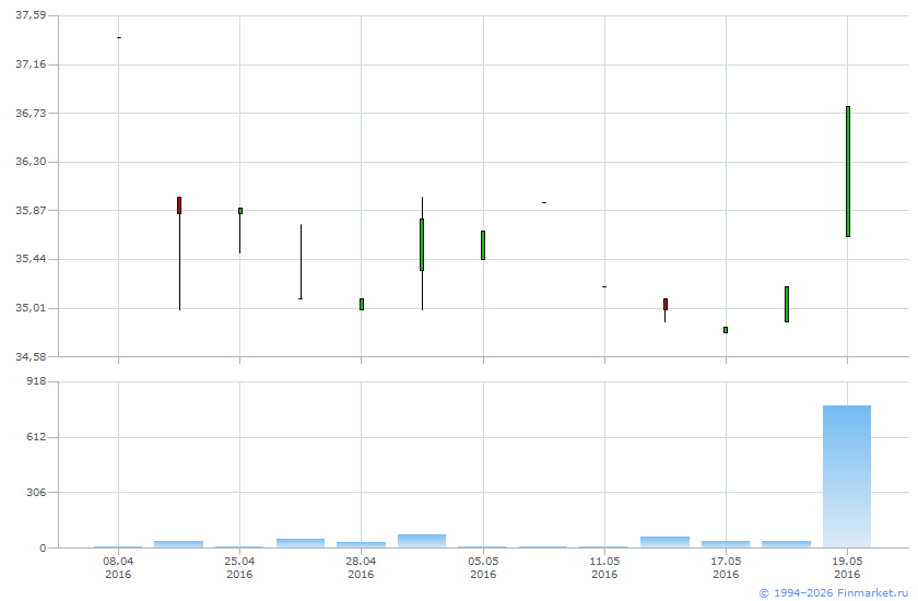 Биржевые котировки инструмента RVI_МБ-ф_may16 предоставлены Московской биржей. Перераспространение информации только с разрешения биржи.