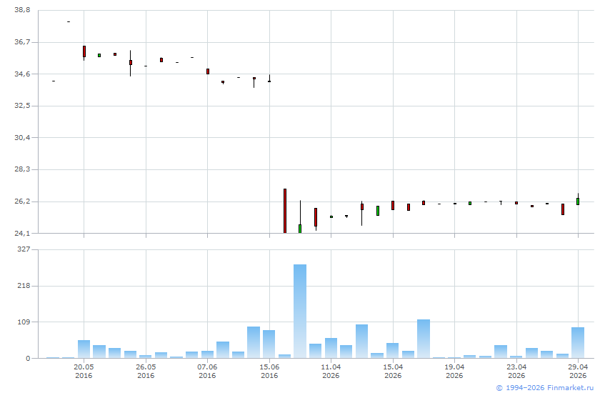 | Цена последней заявки на продажу: | 26,15 |