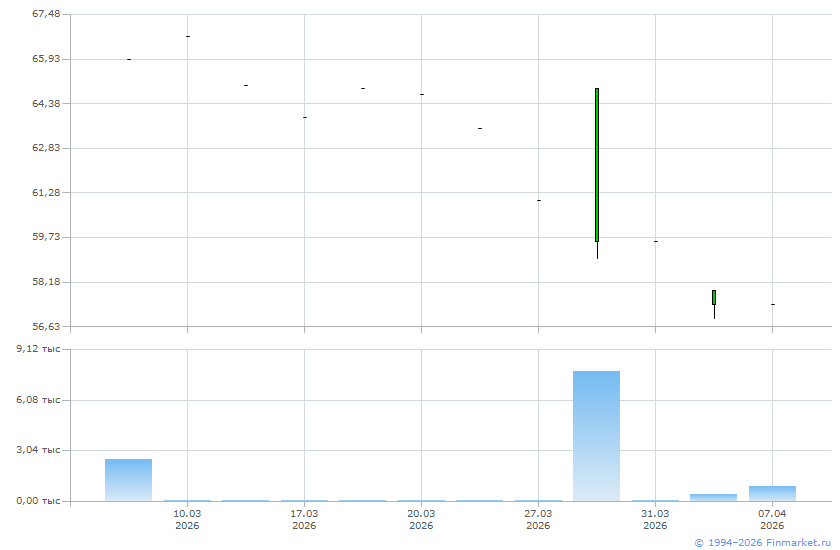 | Цена последней сделки: | 57,4 |