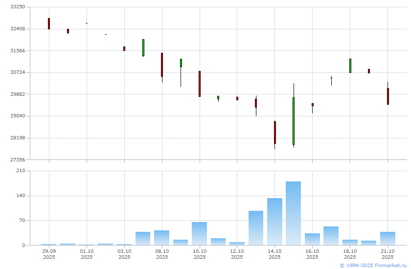 МБ Срочный рынок Фьючерсы | RUB | 29933 | 30059 | ![]() | 29926 | -2,52 | - | 9 | 16 | 480 673,00 RUB | 21.10 14:58 |