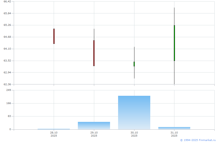 | Цена последней сделки: |  63,47 (-1,3700 / -2,11%) |