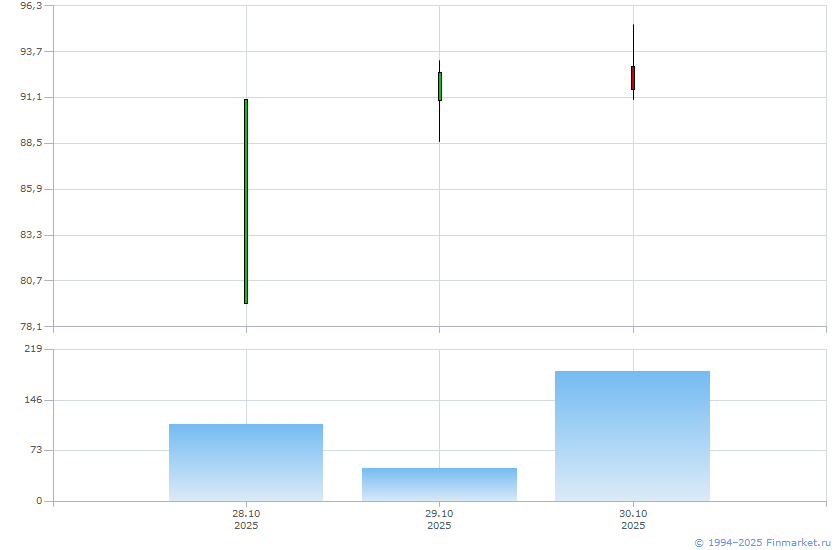 | Цена последней сделки: |  91,56 (+2,6500 / +2,98%) |