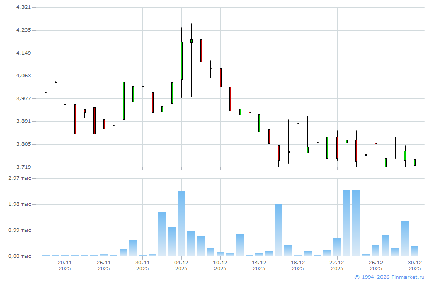 Главная / Аналитикам / Финансовые инструменты / Фьючерс ПРГАЗГЕНРХ-M_МБ-Ф_JUN26 / Биржевые торги online