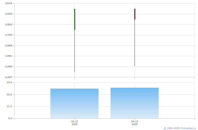 | Средневзвешенная цена дня: | 11 659,3300 |