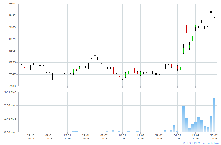 | Средневзвешенная цена дня: | 9 428,6000 |