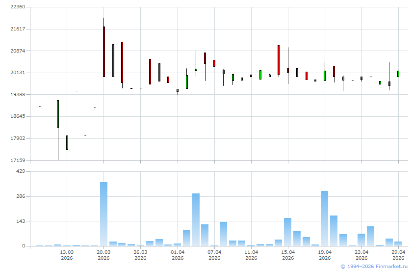 | Средневзвешенная цена дня: | 20 030,0000 |