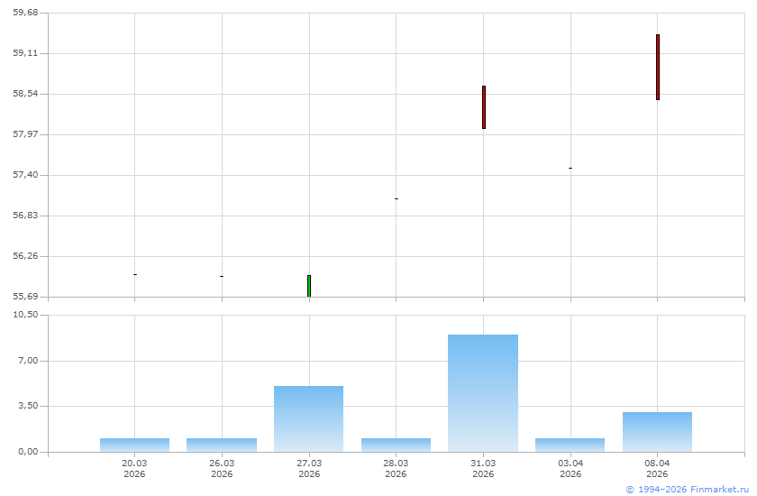 | Цена последней заявки на покупку: | 58,04 |