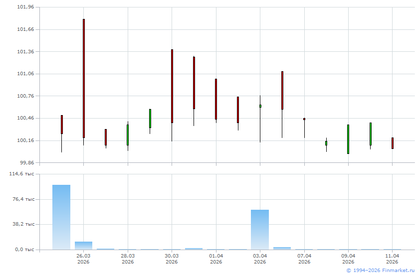 Цена последней сделки: 100,05 (-0,3500 / -0,35%)