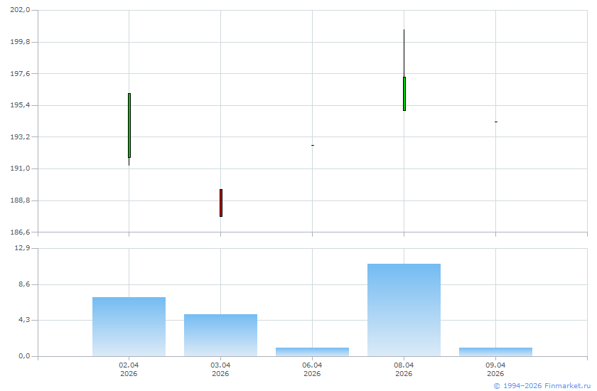 | МБ Срочный рынок Фьючерсы | RUB | 192,78 | 194,72 | - | 194,23 | - | - | 1 | 1 | 194,00 RUB | 09.04 17:31 | |